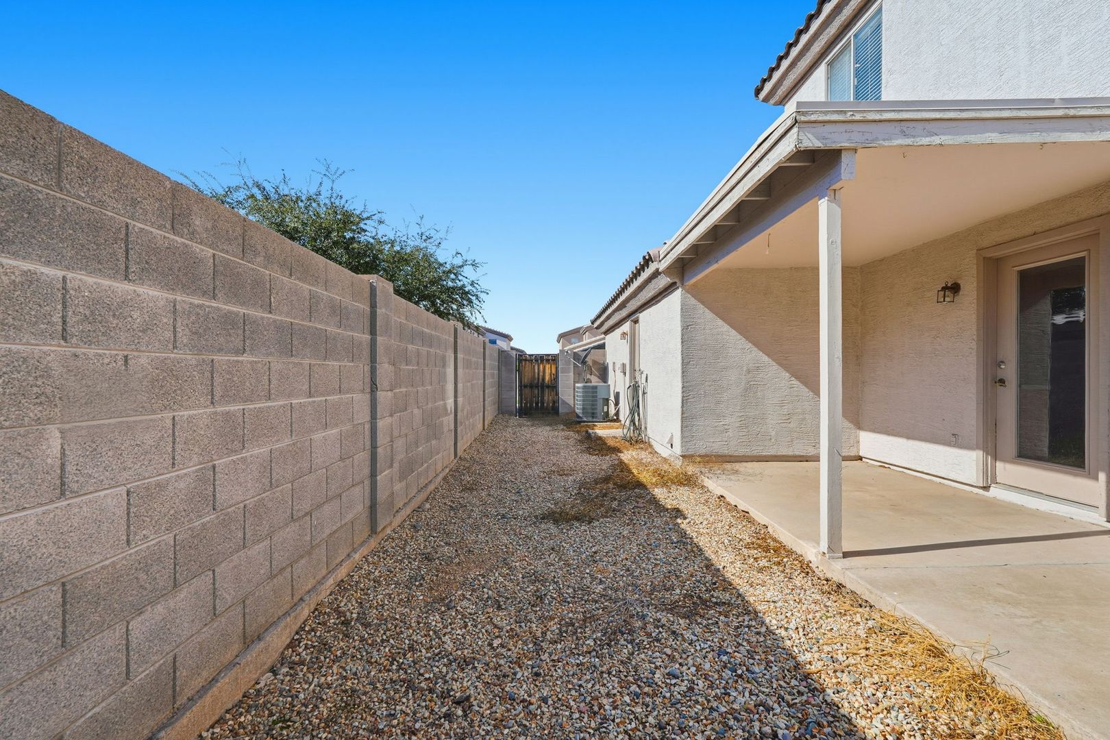 GATED COMMUNITY, ACROSS FROM THE COMMUNITY POOL, 3 BEDROOM/2BATH HOME, MASTER BEDROOM IS DOWN, GOOD SIZE LIVING ROOM, VALUTED TO OPEN FLOOR PLAN UP. KITCHEN WITH ALL APPLICANCES, INSIDE LAUNDRY WITH WASHER AND DRYER, WASHER AND DRYER ''AS-IS'', DESERT BACK YARD, 2 CAR GARAGE WITH OPENER. No cats please. One small dog ok per landlord approval. Washer/dryer are as-is. Won't be repaired or replaced but can be removed prior to move in.
